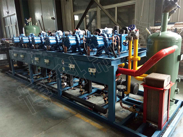 另外,由于并聯(lián)機組將各個制冷部件緊湊的裝配在一個機架上,其機房占地面積僅相當于氨制冷機房面積的15-20%,可大大節(jié)省機房的土地及建設費用.而且螺桿并聯(lián)機組采用電腦控制,日常維護僅需一人定時查看各項設備運行參數(shù)即可。同時由于設備運行穩(wěn)定性高,也無需常備各種零部件,極大的節(jié)省了設備的維修及人工費用。